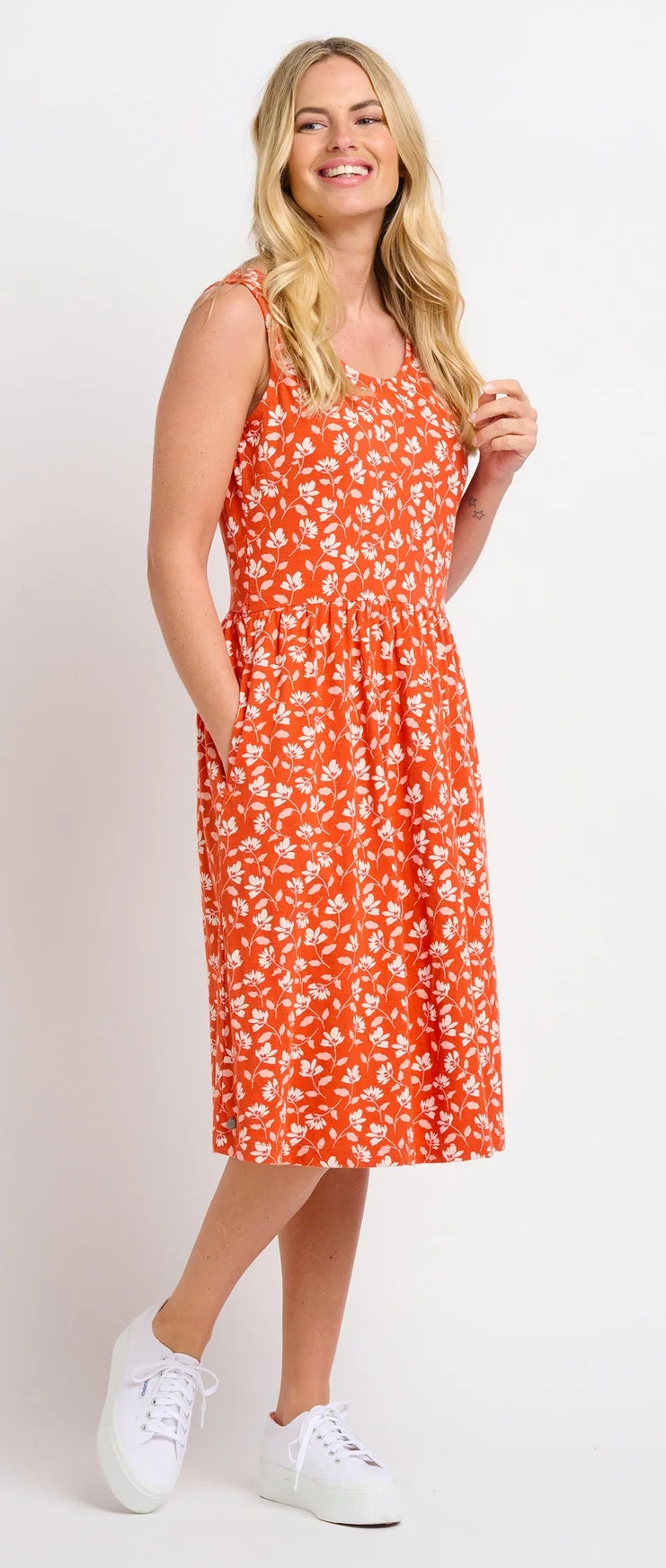 - Item Ref: Brakeburn Womens 'Floating Floral Sleeveless Dress' - Coral.