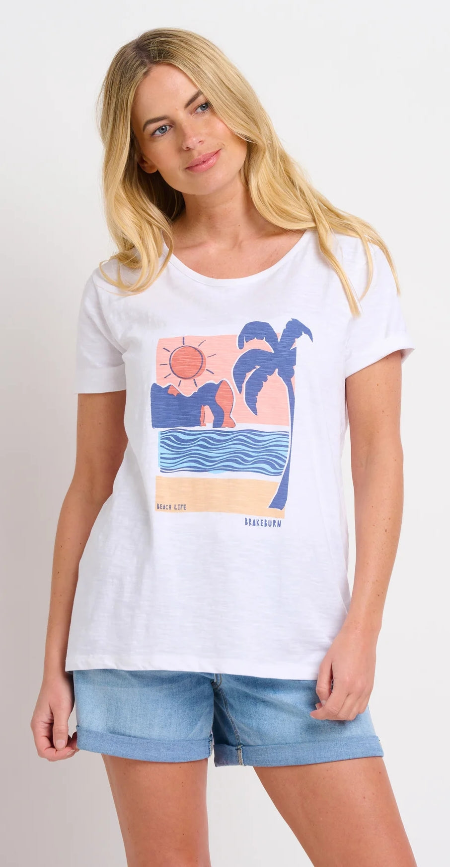 - Item Ref: Brakeburn Women's Landscape Printed Tee - White.