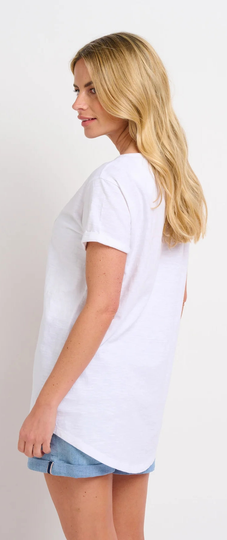 - Curved back droptail hem.