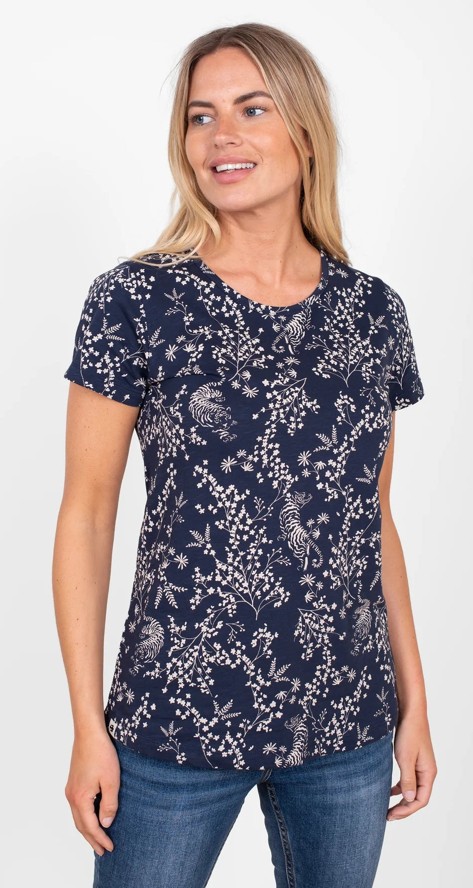 Brakeburn Womens Tiger Print T-Shirt - Navy