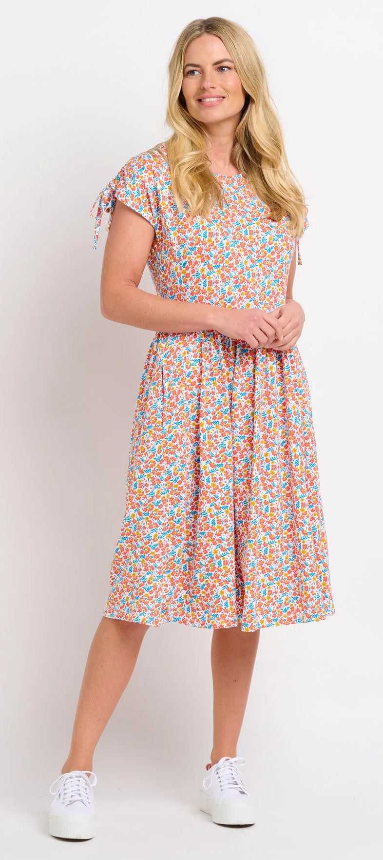 - Item Ref: Brakeburn Womens Whimsical Floral Tie Sleeve Dress - Multicoloured.