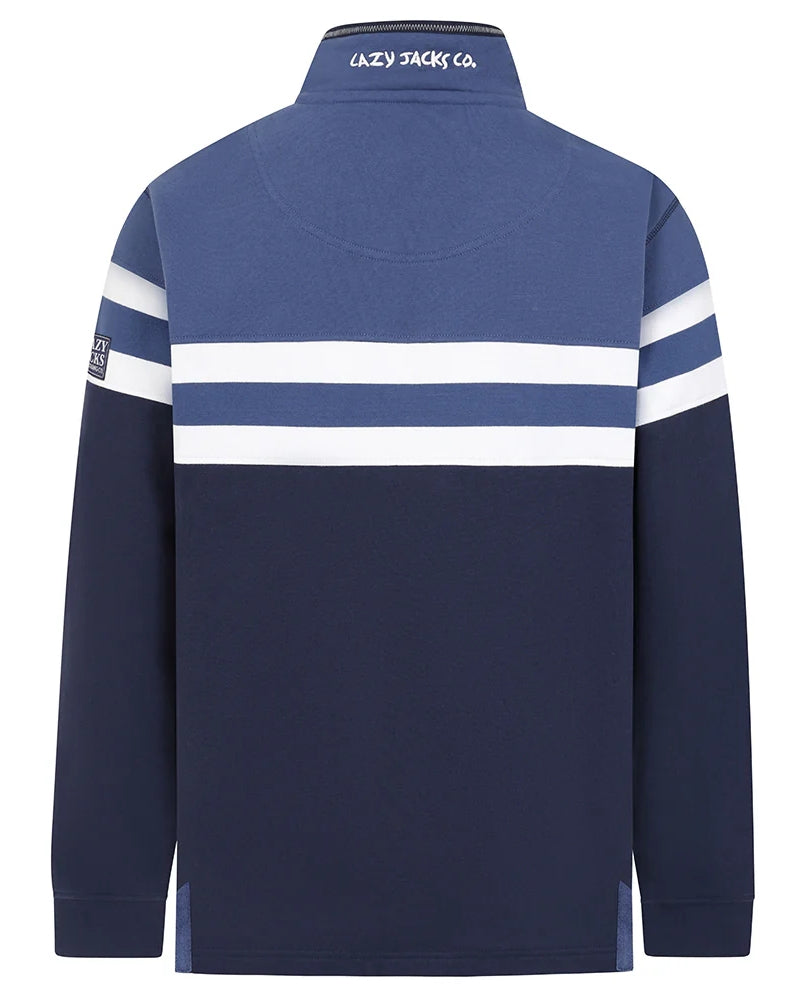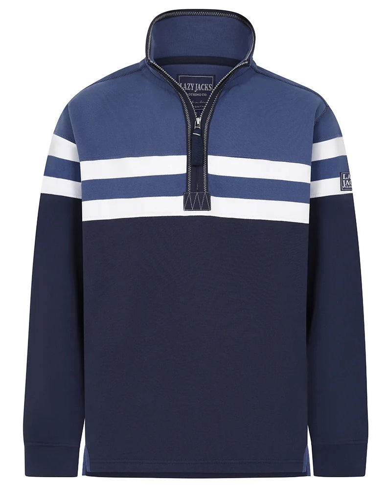 - Item Ref: Lazy Jacks Men's LJ51 Block Stripe 1/4 Zip Sweatshirt - Denim.