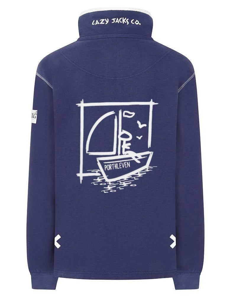 Get cosy in the Lazy Jacks women's LJ3P Porthleven print sweatshirt! Made from 100% cotton, this pullover sweatshirt features a boat print on the back with Porthleven place name. The 1/4 zip neckline and elasticated cuffs add convenience and style, with a logo patch on the sleeve and embroidered logo on the collar. Perfect for chilly days in Cornwall (or anywhere else)!