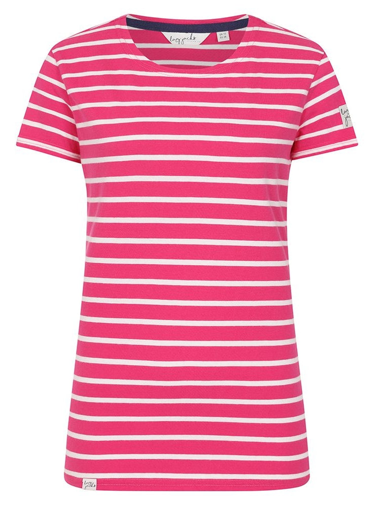 - Item Ref: Lazy Jacks 'LJ8' Short Sleeve Stripe Tee - Sorbet Pink.