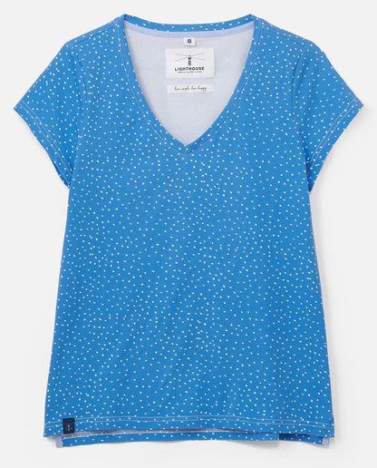 Lighthouse Womens Ariana V-Neck Tee - Marine Blue Dot