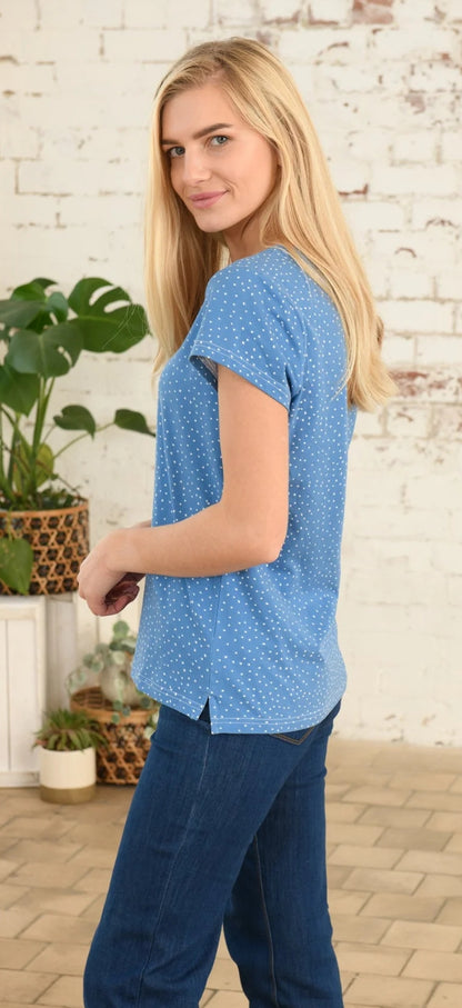 - Item Ref: Lighthouse Womens Ariana Tee - Marine Blue Dot.