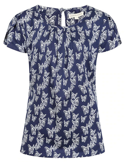 - Item Ref: Mudd & Water Womens 'Calla Top' - Navy Butterfly Print.