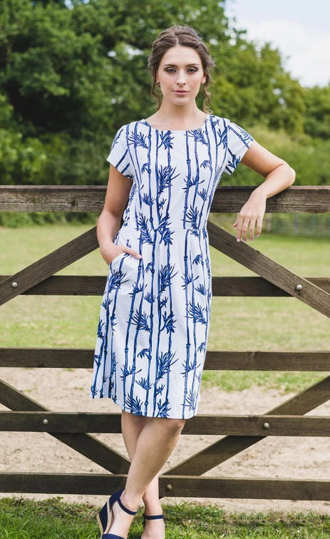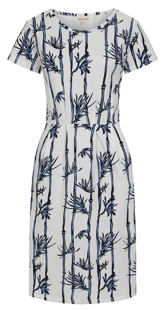 - Item Ref: Mudd and Water 'End of the Day' Dress - White / Bamboo Print.