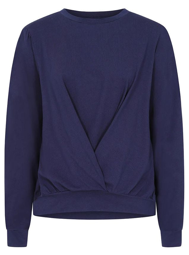 Indulge in comfort with Mudd & Water's Sanctuary Sweat in Navy. Made from a 95% organic cotton and 5% spandex, soft and slightly stretchy fabric. Featuring crossover front detail, high neckline, and elasticated cuffs and bottom hem, this sweatshirt is both stylish and functional.