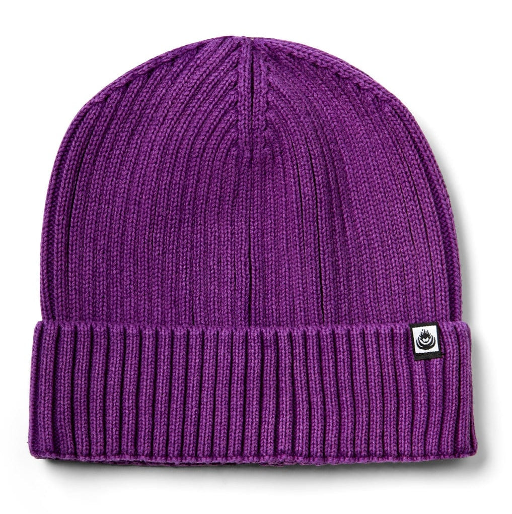 The Saltrock Maine beanie in Purple, made from 100% cotton, this beanie features an acid wash effect dye and a ribbed pattern with turn back hem for extra warmth around the ears, with the small logo label adding a touch of branding.