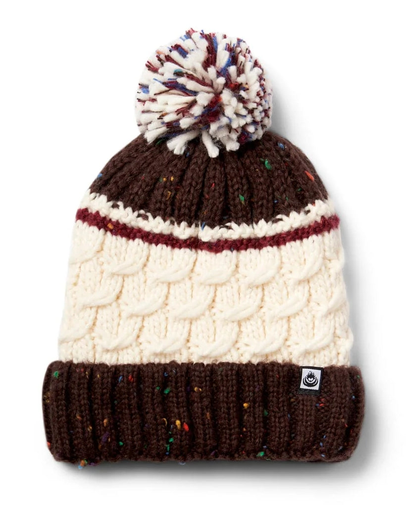 The Saltrock Tiree bobble hat in Brown, made with an acrylic and polyester yarn with a fluffy Sherpa lining, this hat is perfect for chilly days. With a turn back hem, multicoloured fleck, and small logo label on the hem.