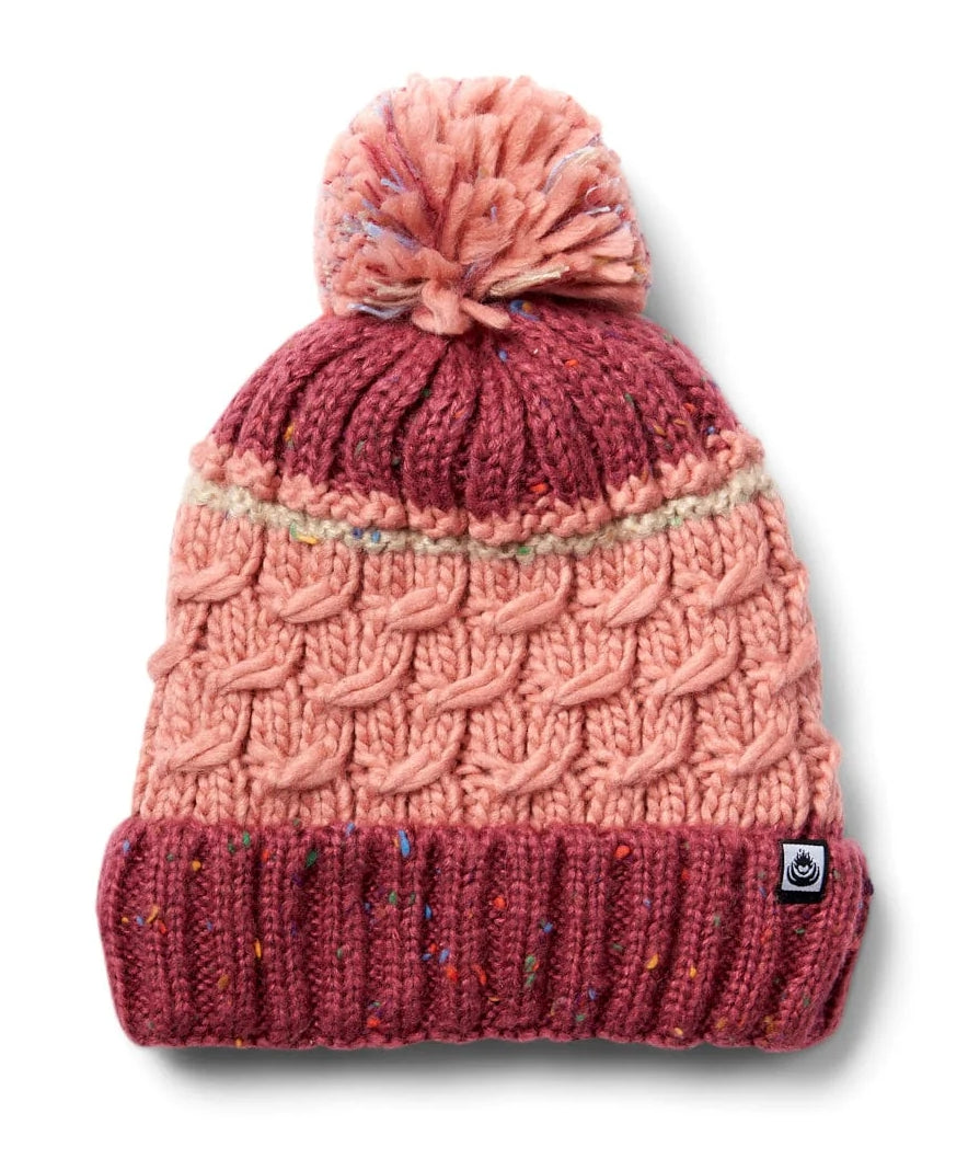 The Saltrock Tiree bobble hat, featuring a fluffy Sherpa lining and turn back hem for added warmth around the ears. Made with 98% Acrylic and 2% Polyester, it also has a multicoloured fleck design and small logo label detail.