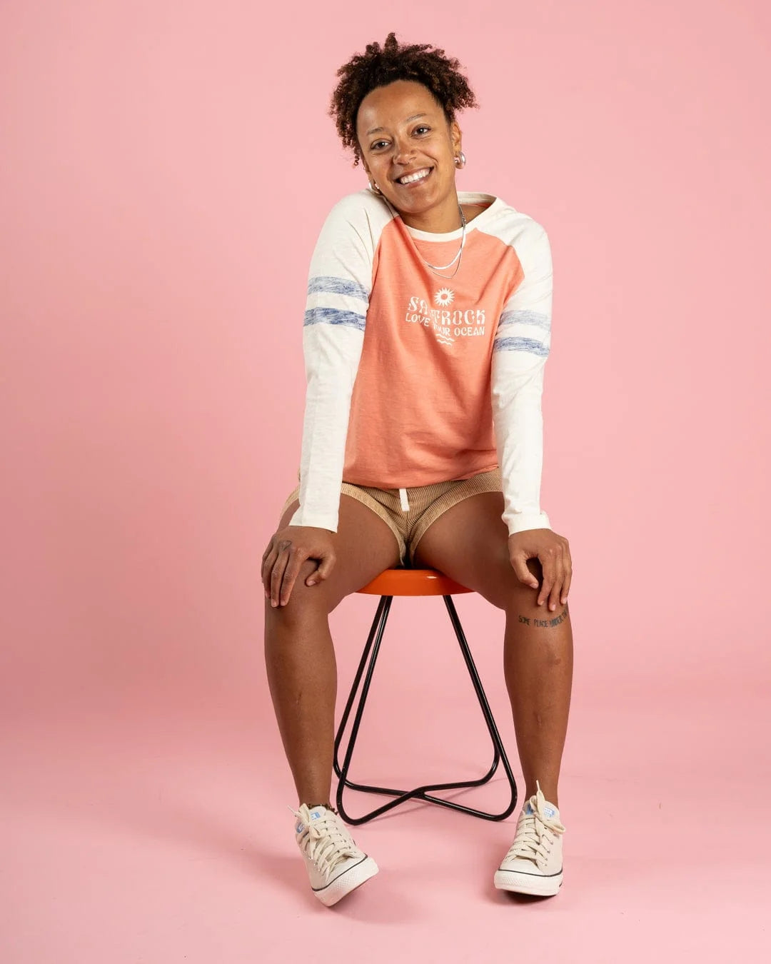 Stay stylish and comfortable with the Saltrock womens Ocean Rise long sleeve t-shirt. Crafted from 100% soft slub cotton, this raglan-sleeved tee combines a vibrant coral body with cream sleeves highlighted by blue stripes for a fresh, eye-catching look. With a round neckline and lightweight fabric for all day comfort, and a subtle logo print on the chest adding a touch of signature style. Perfect for layering or wearing on its own, this long sleeve tee brings effortless charm to your everyday wardrobe.