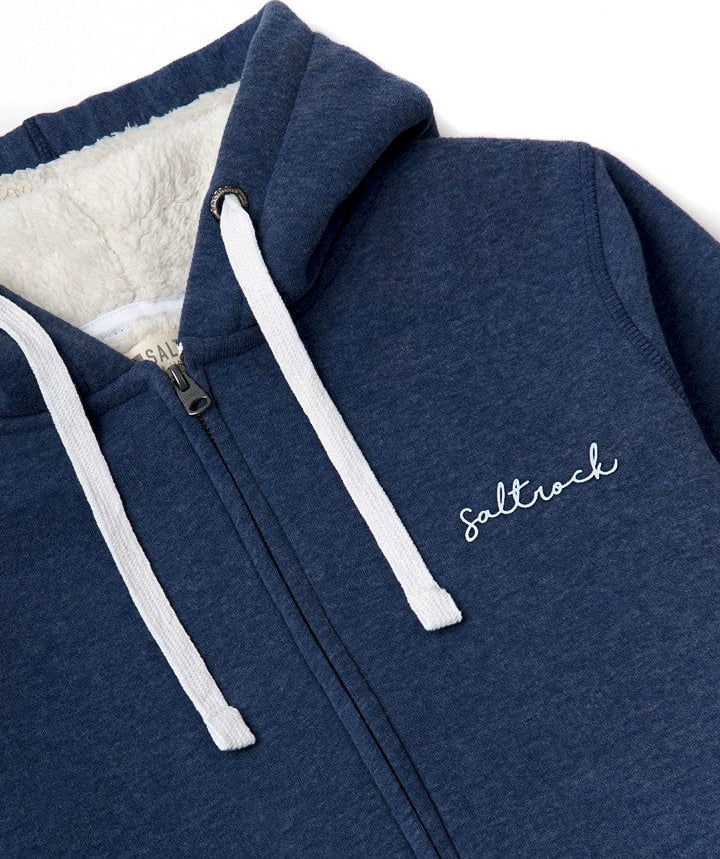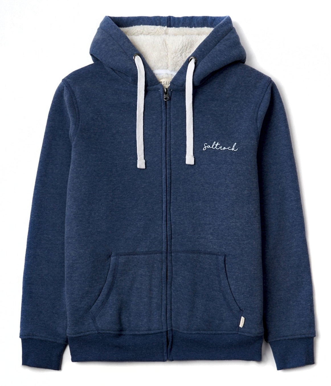 Stay cosy and warm in the Saltrock women's Velator borg lined hoodie in Blue. Made with a soft marl sweatshirt fabric and lined with fluffy Borg material this full zip hoody features tummy pockets, elasticated cuffs and a drawstring hood for ultimate comfort. Perfect for chilly days!