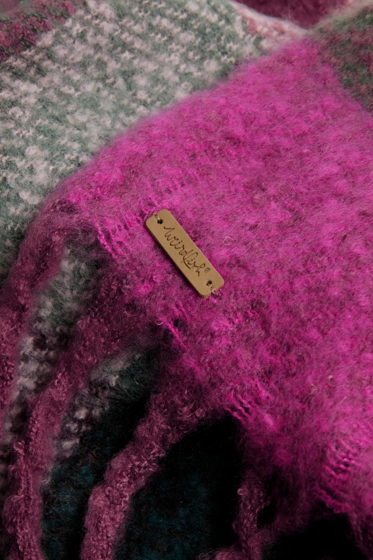 The Weird Fish Austell Eco Cosy Scarf in Mulled Wine, made with 100% recycled polyester, this scarf features a thick cosy material and a trendy block check pattern finished with tasselled ends.