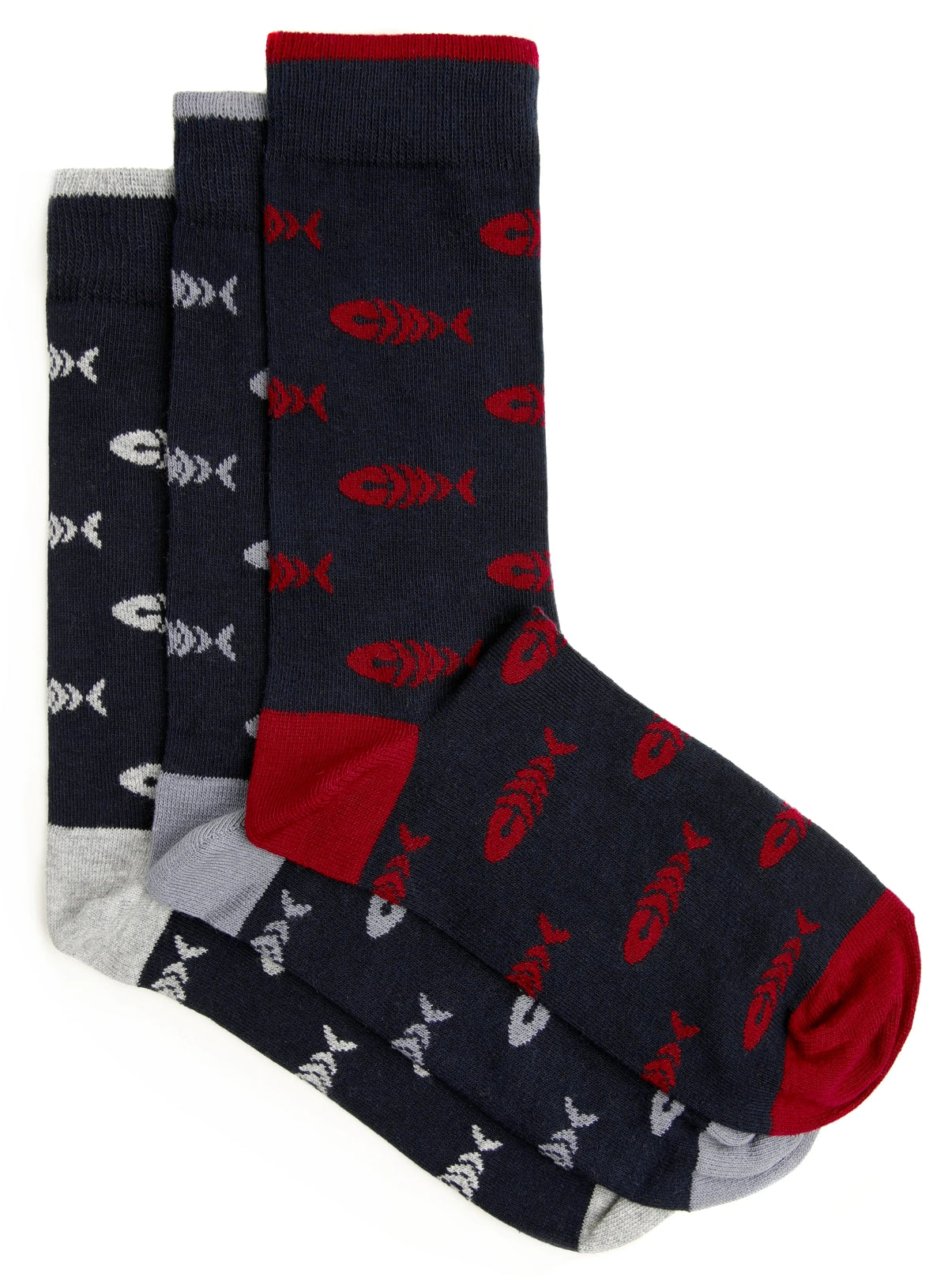 Weird Fish Mens 'Ronan' 3 Pack Socks - Navy / Red / Grey