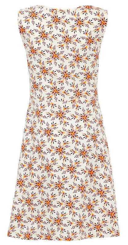 The Weird Fish women's Paisley printed jersey dress, made with 100% organic cotton, this sleeveless dress features a flattering v-neckline and an A-Line style. The beautiful floral burst pattern adds a touch of charm to this light cream dress.