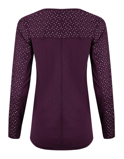 Weird Fish Womens Topia Broderie Sleeve Top - Mulled Wine